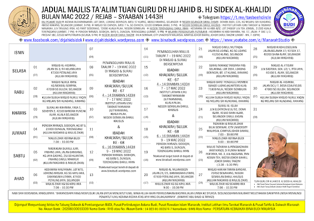 JADUAL PENGAJIAN MAJLIS TAALIM